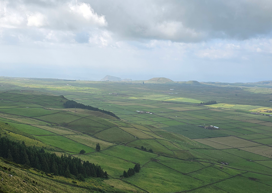 Приліт із Лісабона зранку. Знайомство з островом: оглядовий майданчик Monte Brasil з панорамою Анґра-ду-Ероїжму (ЮНЕСКО), поїздка до Serra do Cume, знайомство з традиційними будиночками-каплицями Імперіуш. Короткі прогулянки природними парками, трекінг Trilho da Ponta Serreta, купання в природних морських басейнах, створених лавою. Після обіду — спуск у вулкан Algar do Carvão (вхід ~8 €), дегустація сирів на фермі Vaquinha. Поселення в готель, відпочинок.